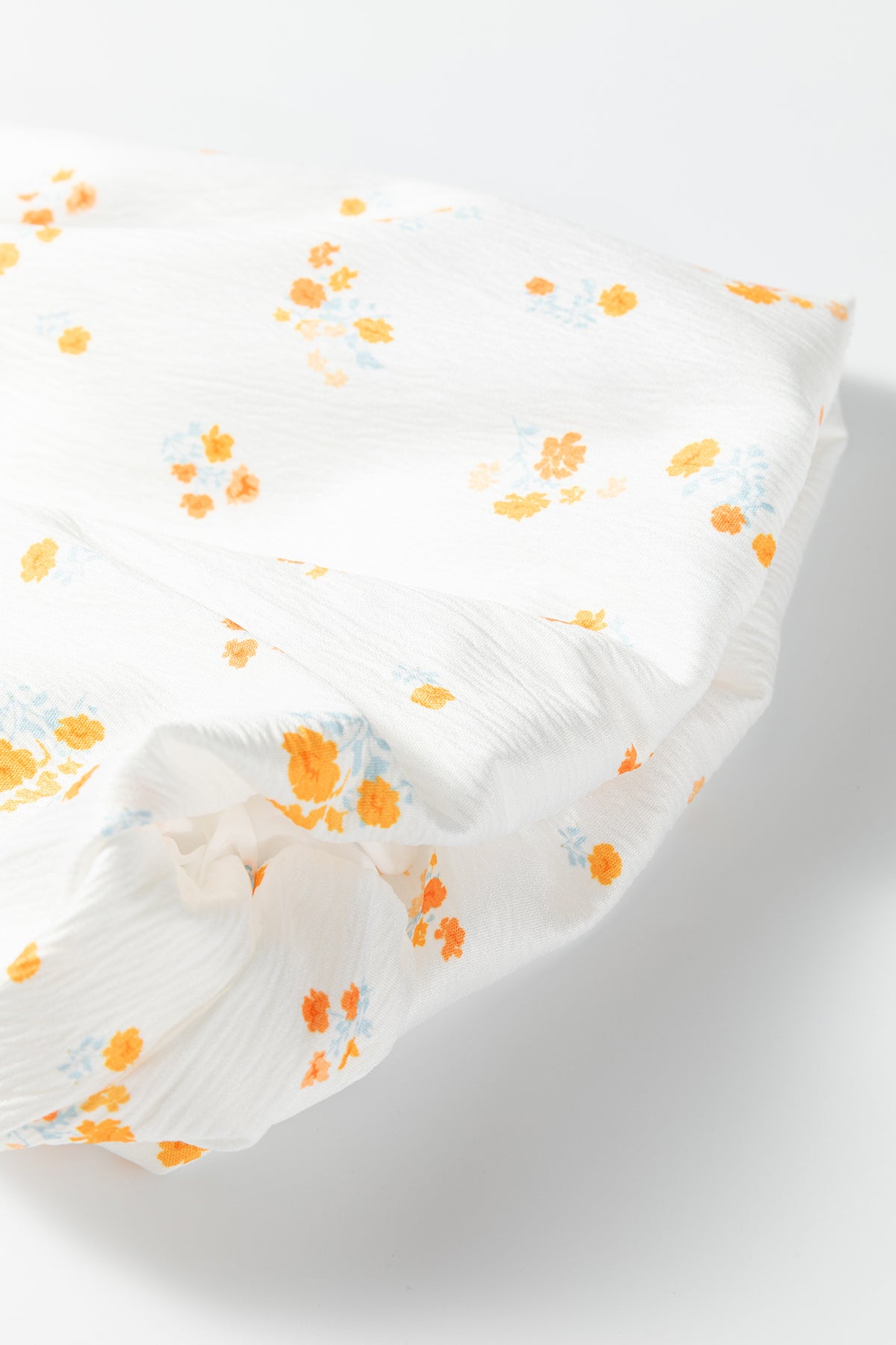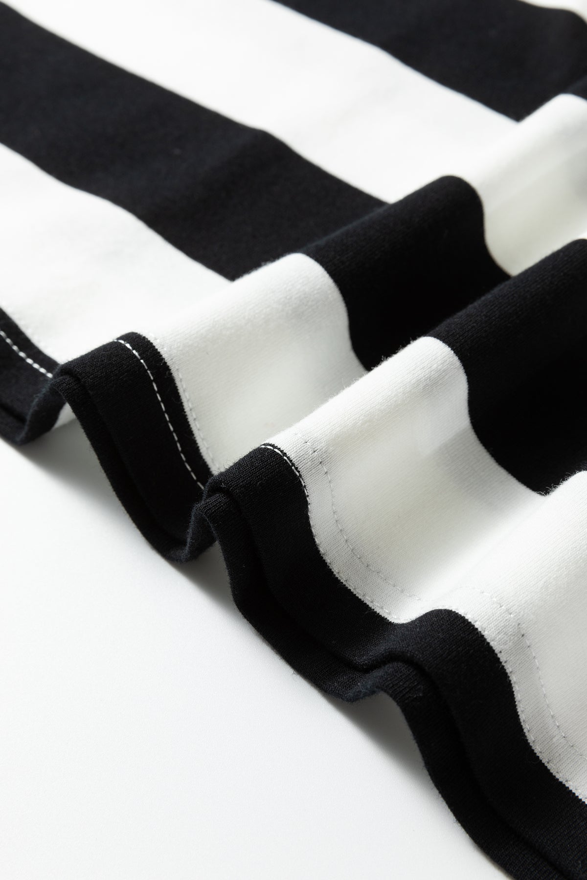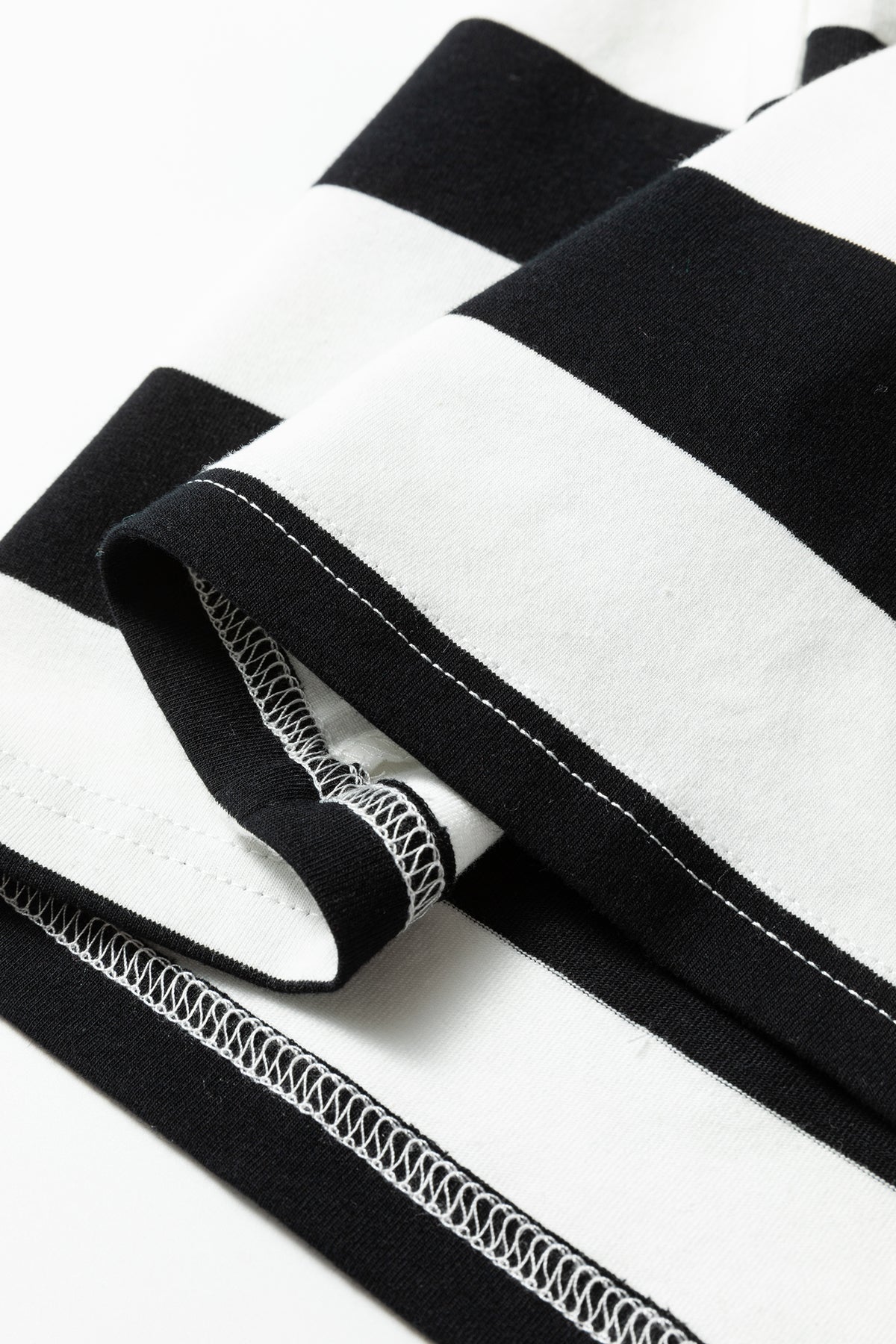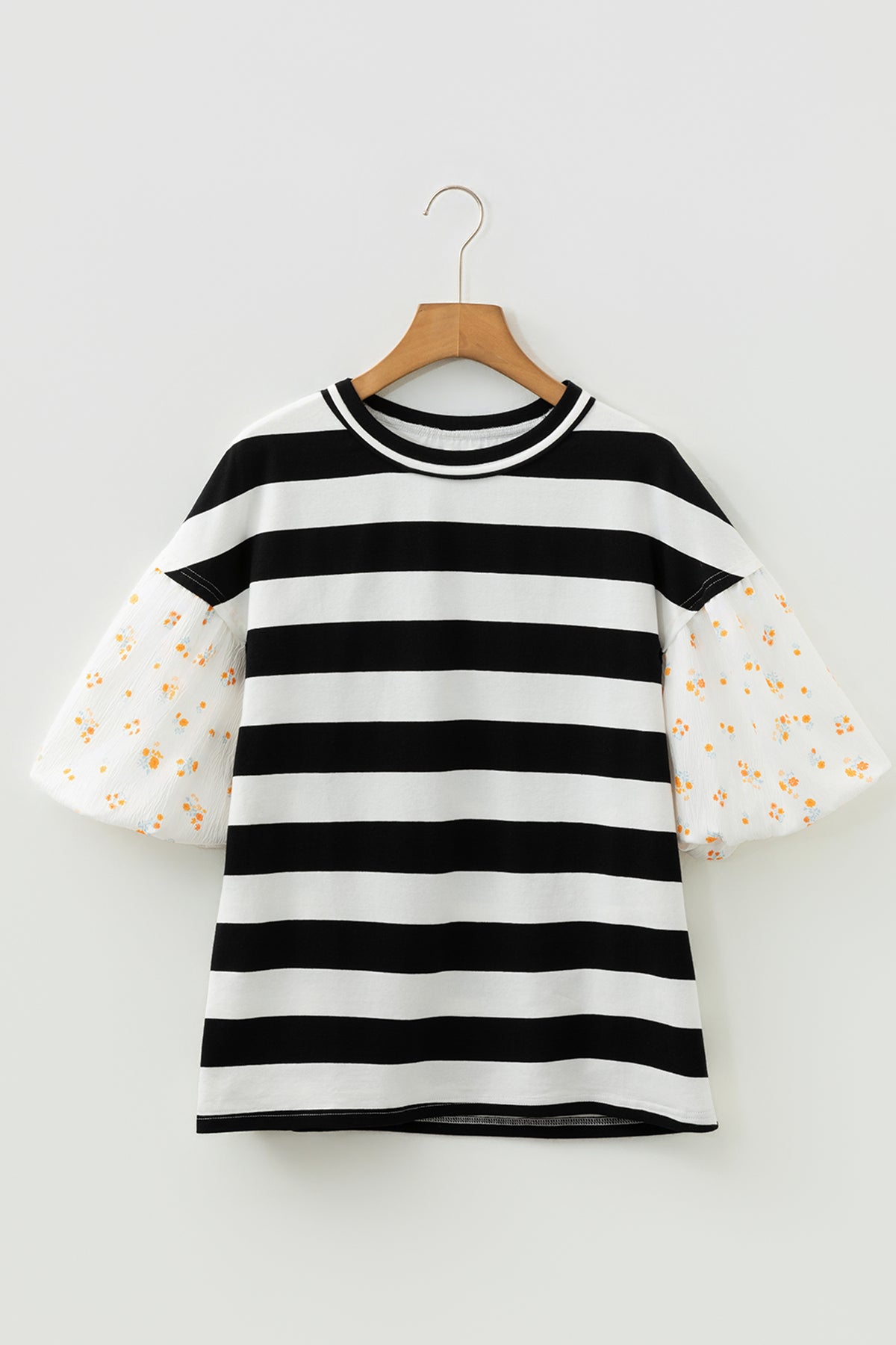 Black Stripe Floral Print Puff Sleeve Patchwork Blouse
