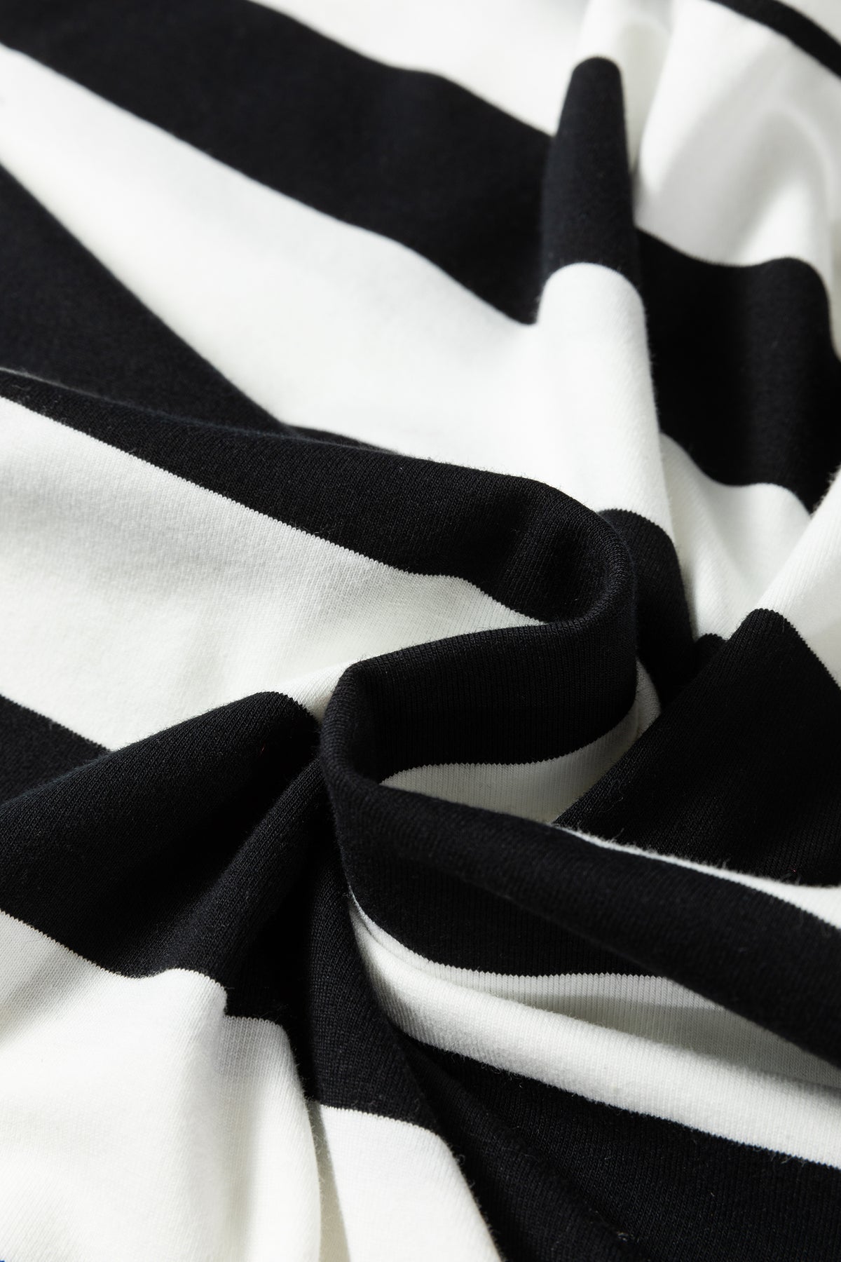 - Striped floral blouse delivers a bold mixed-print look for daily wear.