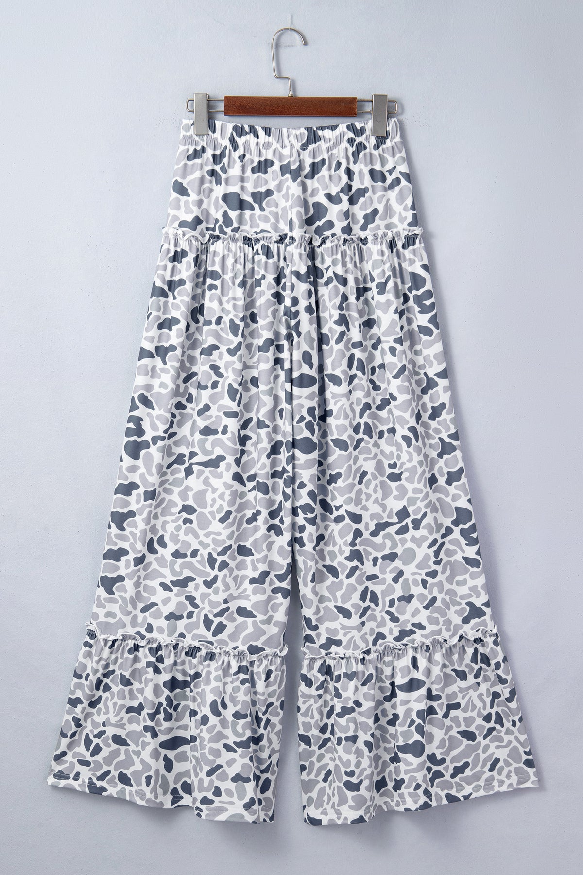 • Camo print casual pants feature a wide leg for relaxed, on-trend style.