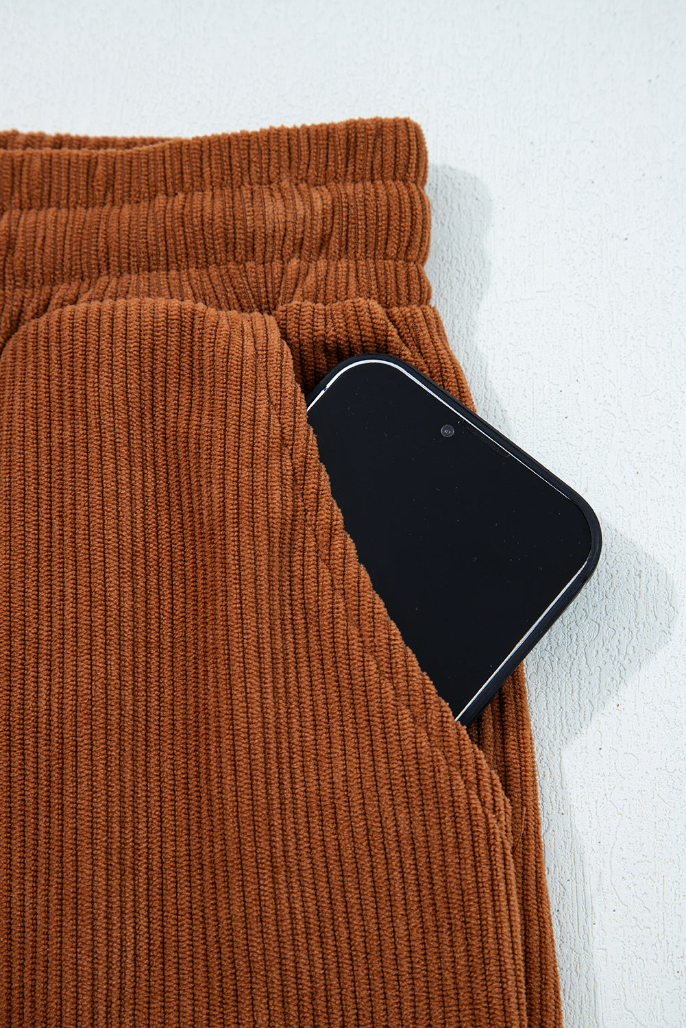 Cozy corduroy fabric is warm and durable perfect for fall and winter wear. Adjustable drawstring waist ensures comfort and flexibility for all-day wear. Casual chic design blends relaxed vibes with timeless corduroy texture. Versatile styling pairs easily with sweaters, hoodies and shackets for effortless outfits.