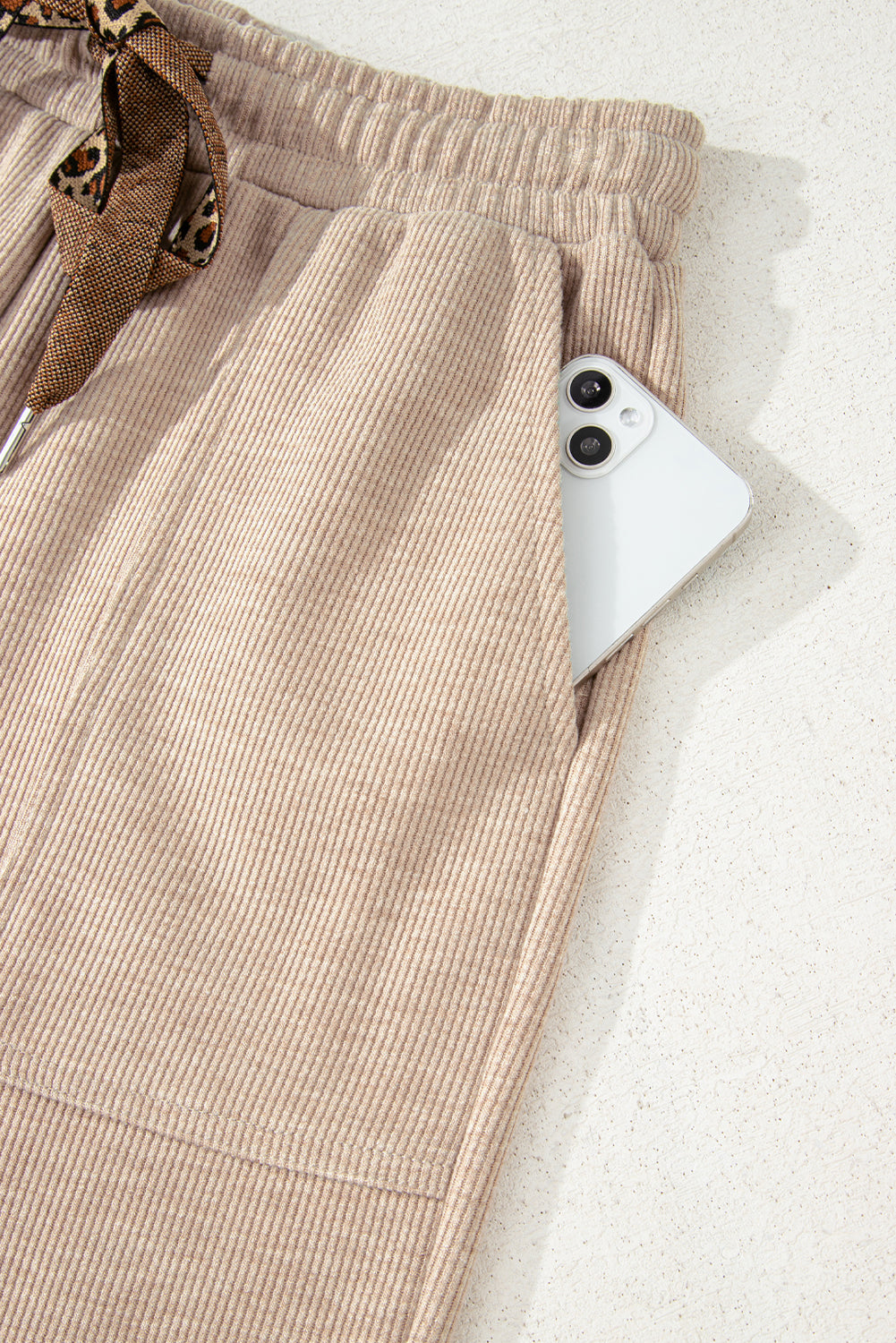 The contrast leopard drawstring waist highlights a chic look and adjustable comfy wearing. This casual trousers for women are very quality and textured. Itβs warm enough while looking stylish for cold weather. Perfect to match with any fashionable tops like sweaters or sweatshirts.