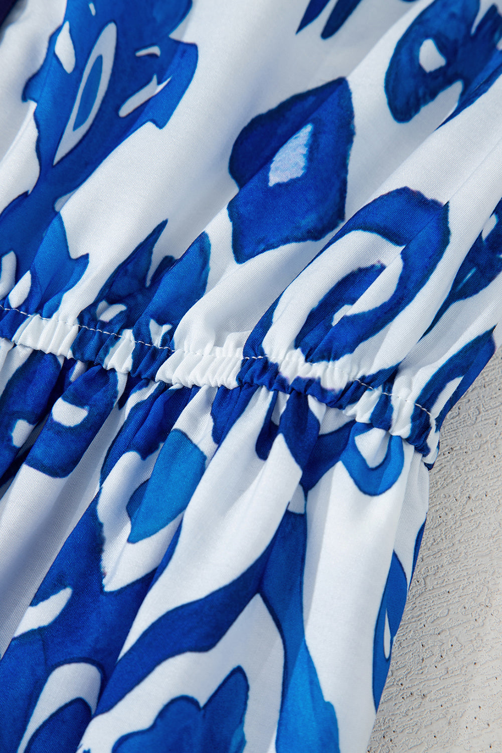 Blue Floral Puff Short Sleeve V Neck High Waist Maxi Dress