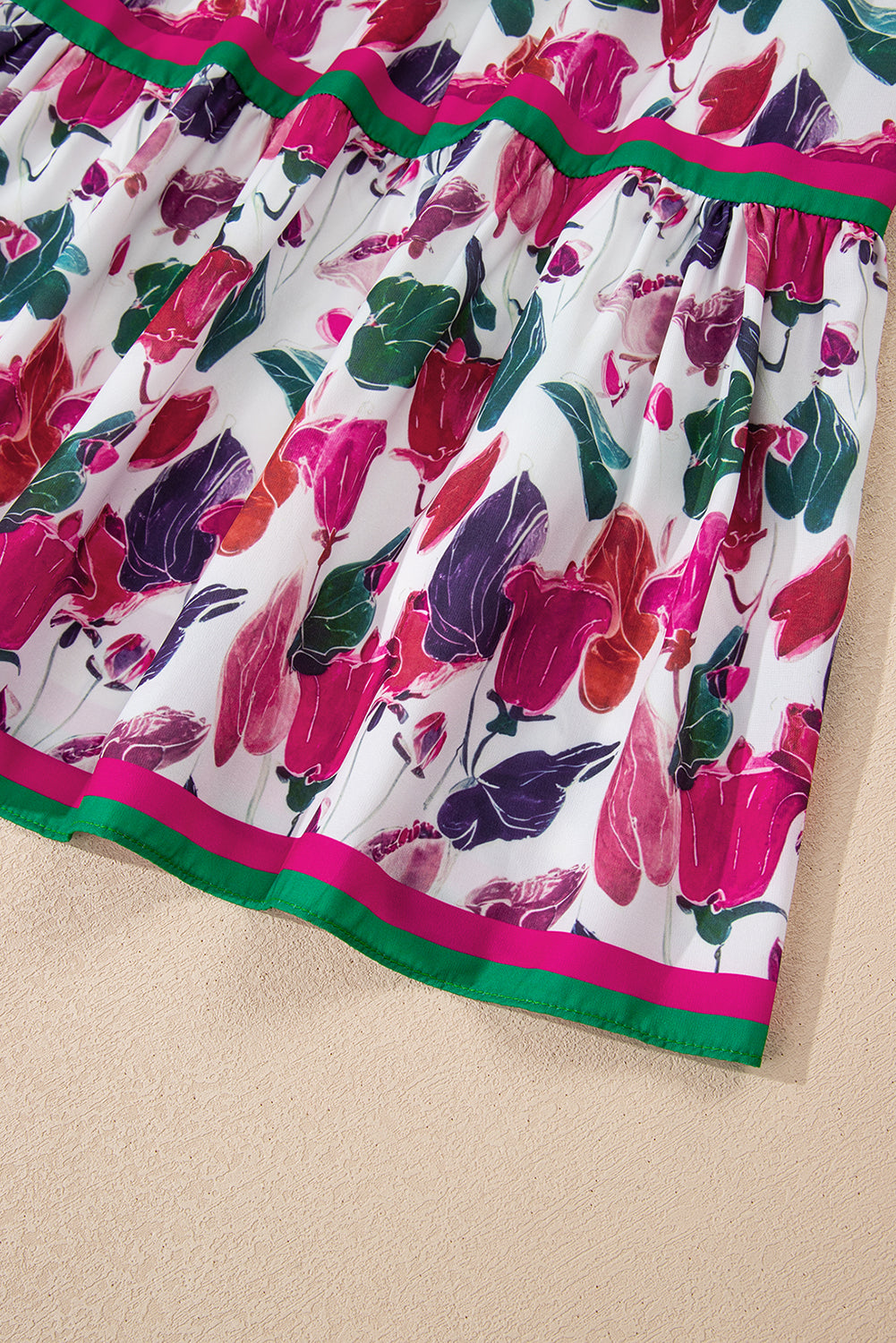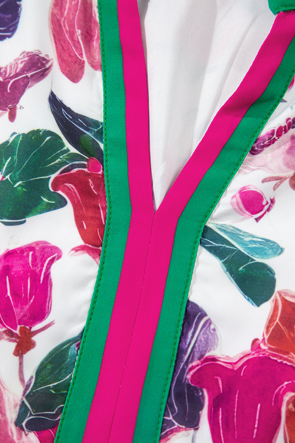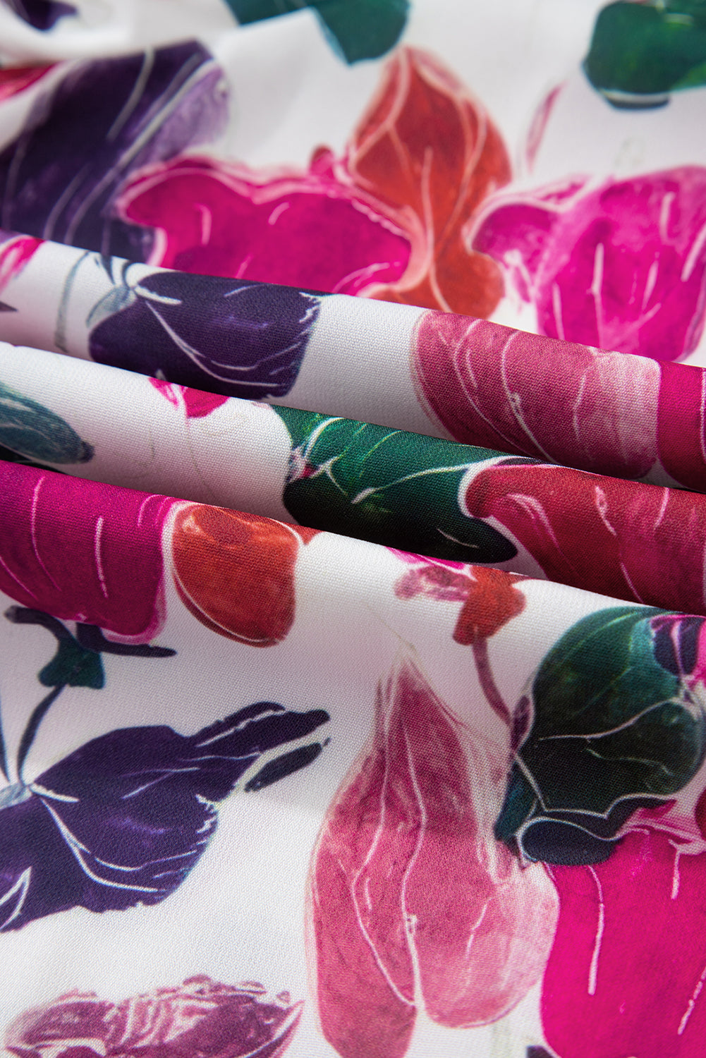 Eye-catching floral print with contrast striped detail for a chic mini dress look. Long sleeves provide stylish coverage, perfect for transitional weather. Flattering mini length enhances silhouette for casual and party wear. Lightweight fabric ensures comfortable all-day wear and breathability.