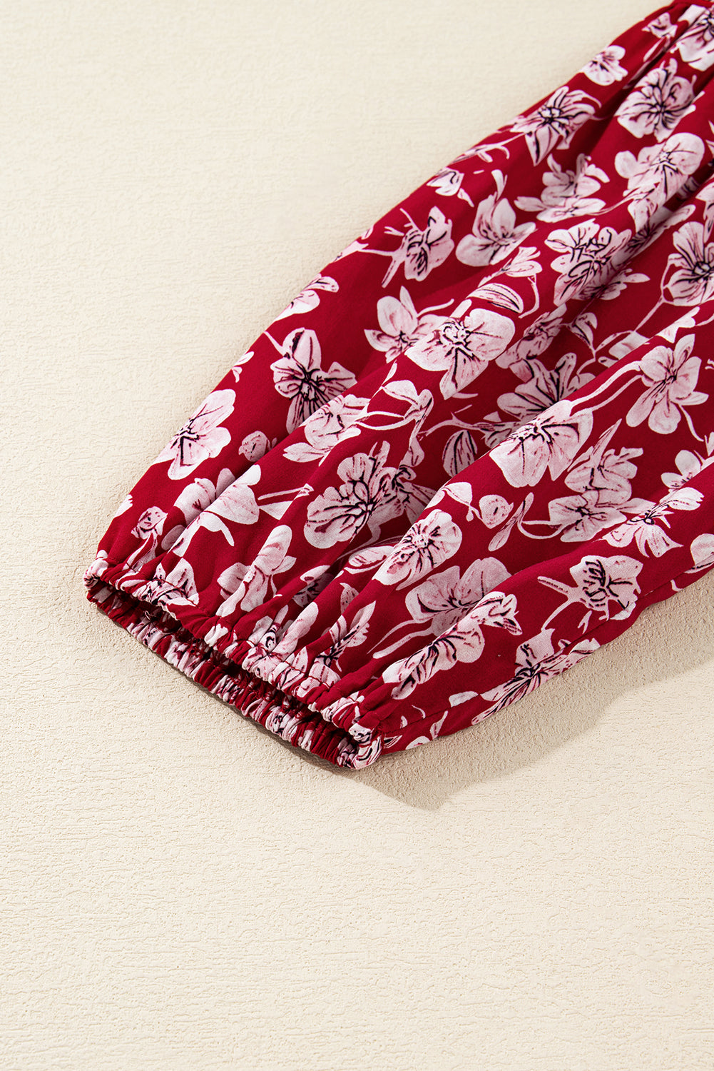 Embrace sweet energy with this adorable floral dress. Features a v neck, long puff sleeves, and a ruffled hem. Made of quality fabric in a lightweight flowy silhouette. Plus size mini dress in a loose fit to suit all body shapes well.