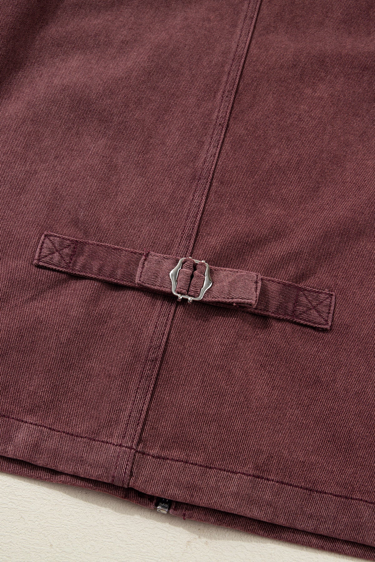 Coffee Corduroy Collar Zipped Front Denim Jacket