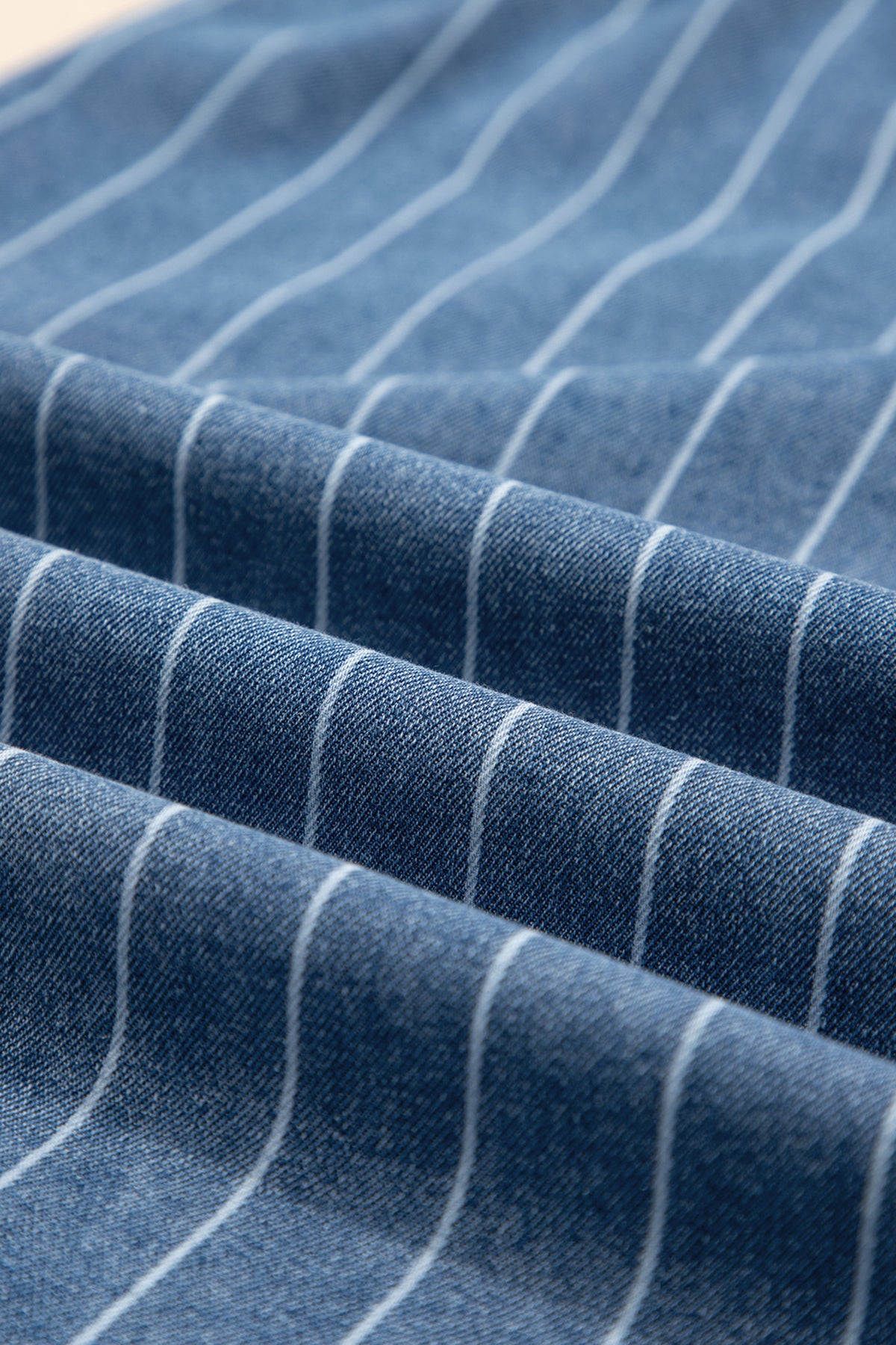 Sky Blue Stripe Button Pleated Drawstring Waist Casual Wide Leg Jeans