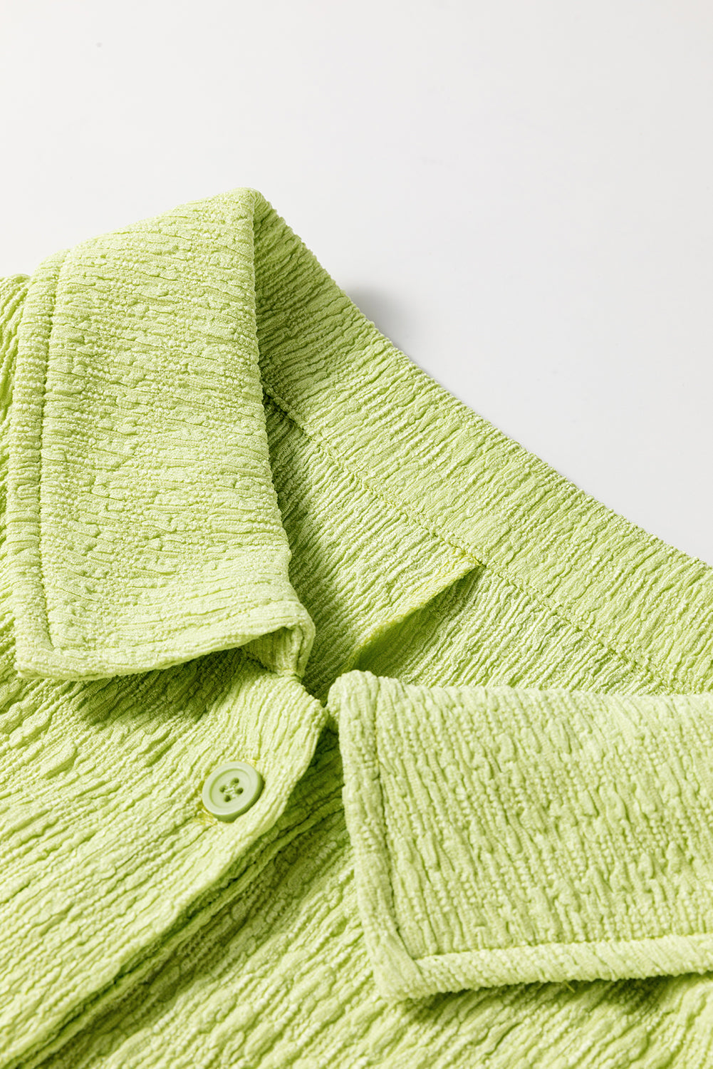 Meadow Mist Green Textured Short Sleeve Patched Pocket Buttoned Shirt Romper