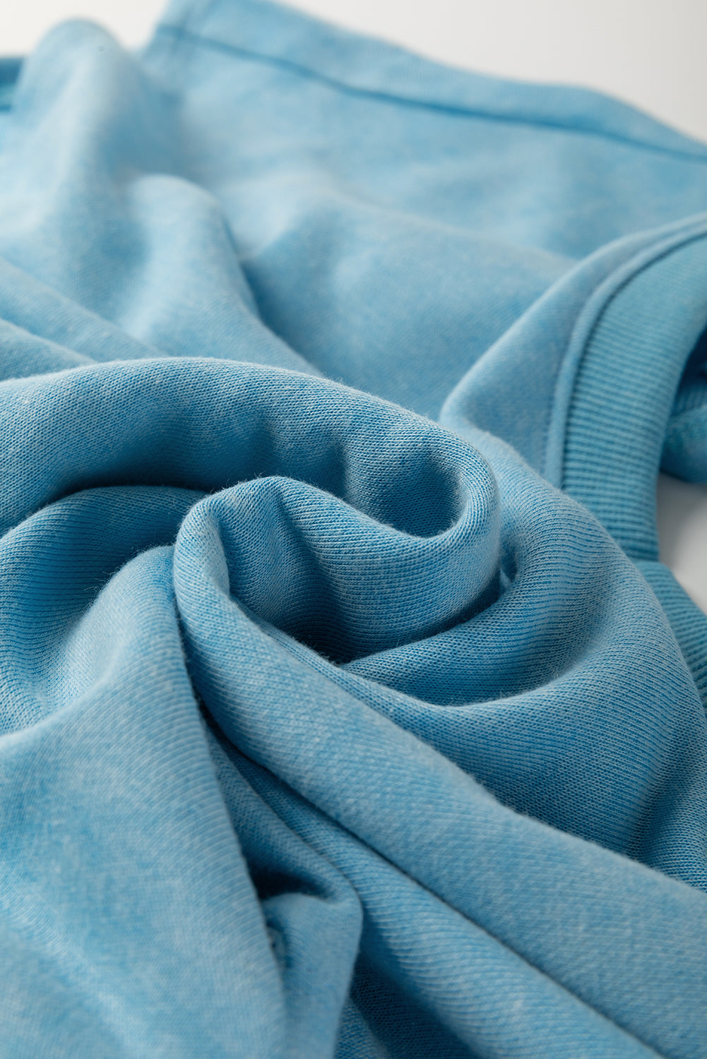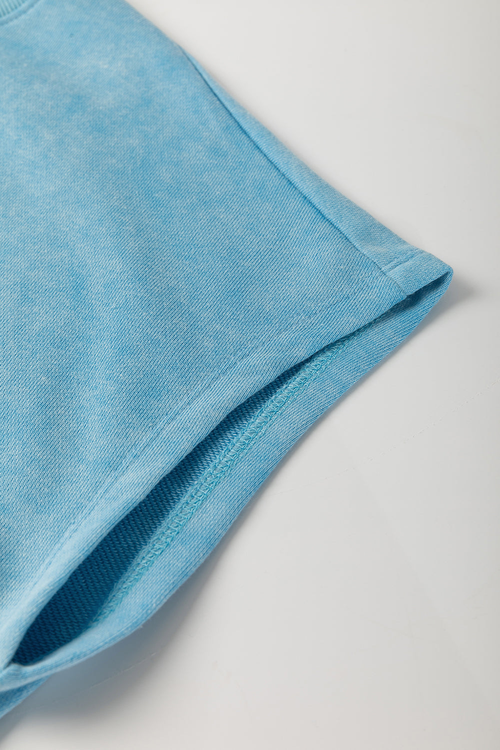 Mist Blue Mineral Wash Drawstring Elastic Waistband Hollow Out Back Short Sleeve Romper