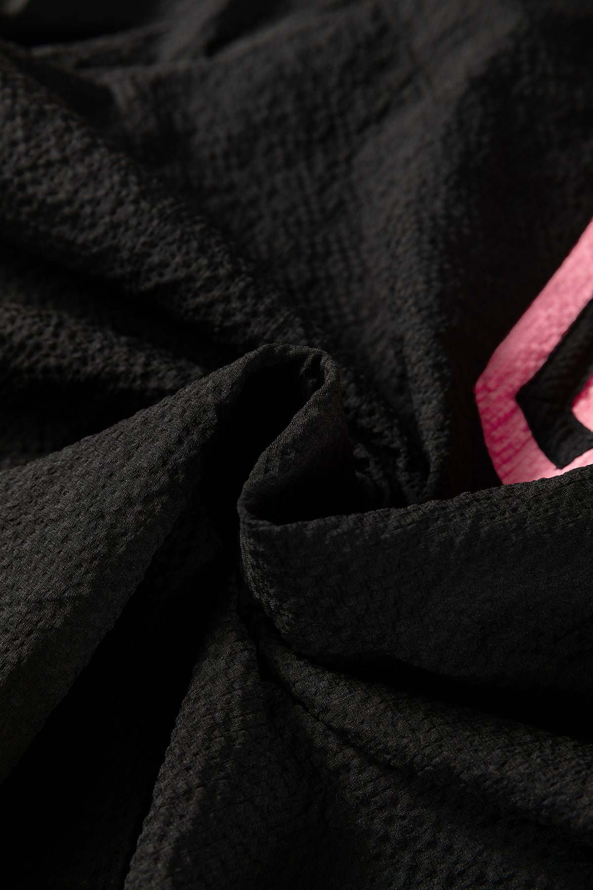 Black Color Block Patchwork Detail V Neck Textured Long Sleeve Blouse