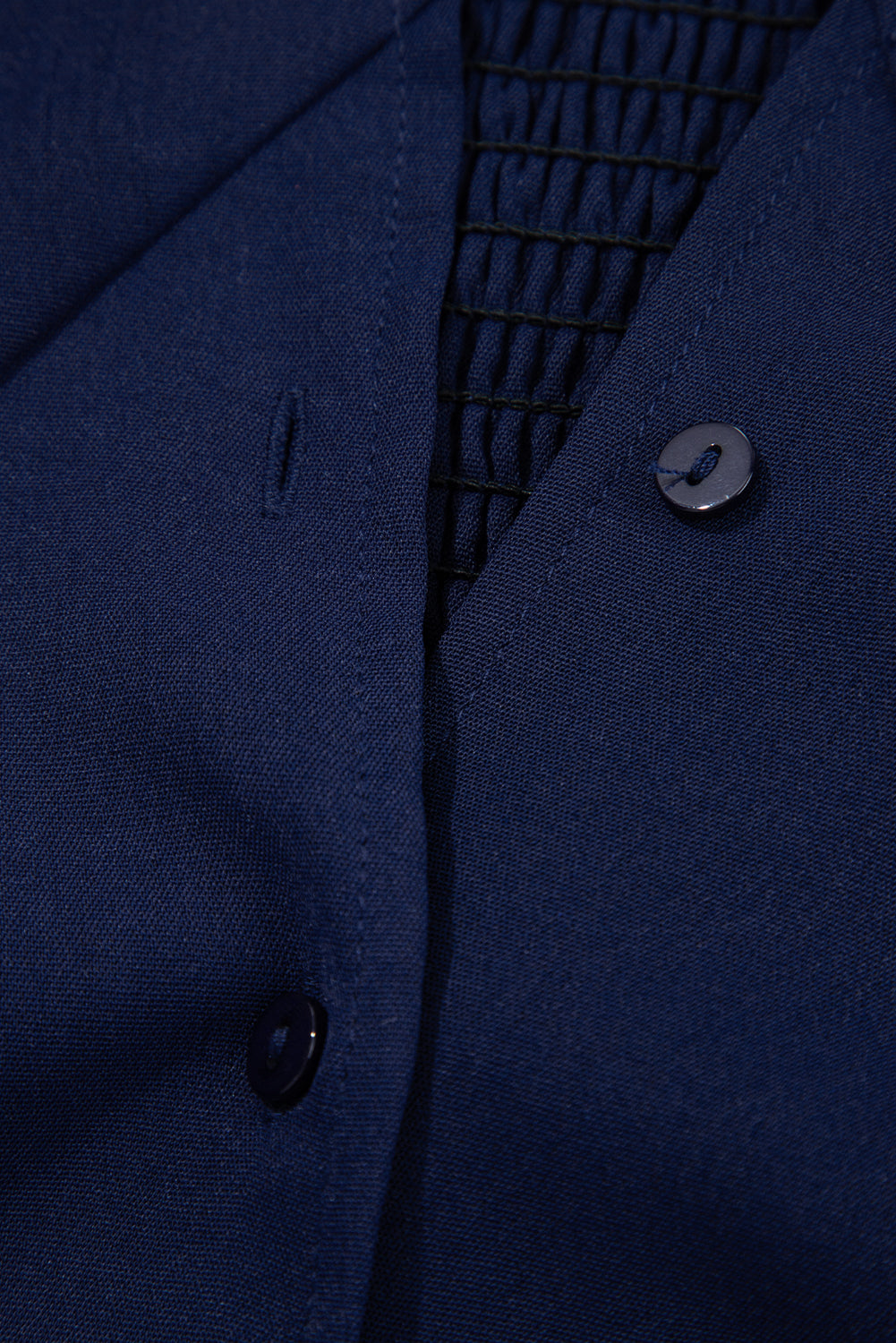 This midi dress is bound to give a slender silhouette. It features a v neck, buttoned front and short sleeves. The shirred back is chic and adds detail to this summer dress. This calf-length dress is flattering for different body shapes.