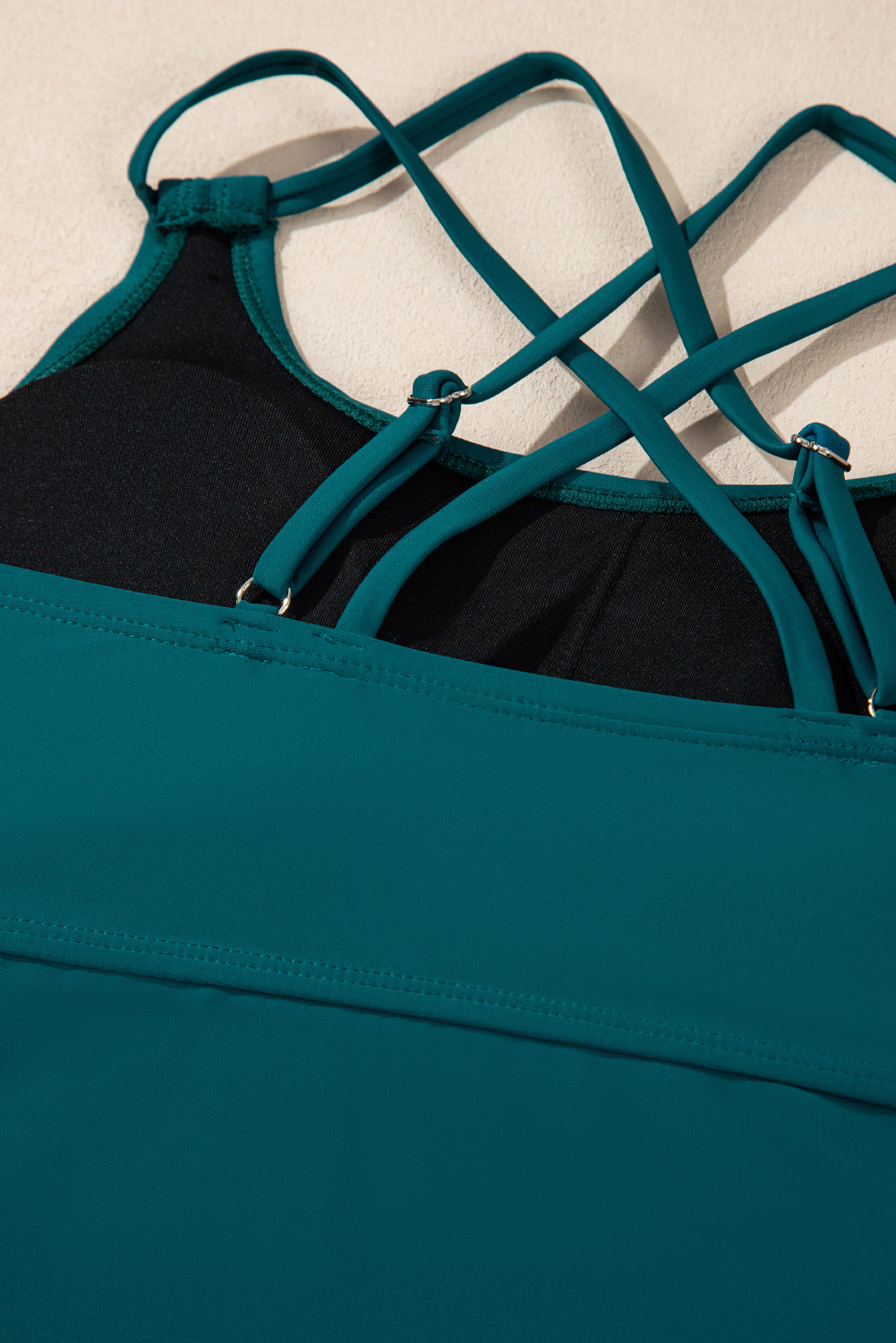 Mineral Red Drawstring Tummy Control Mix-and-match 2pcs Tankini Swimsuit