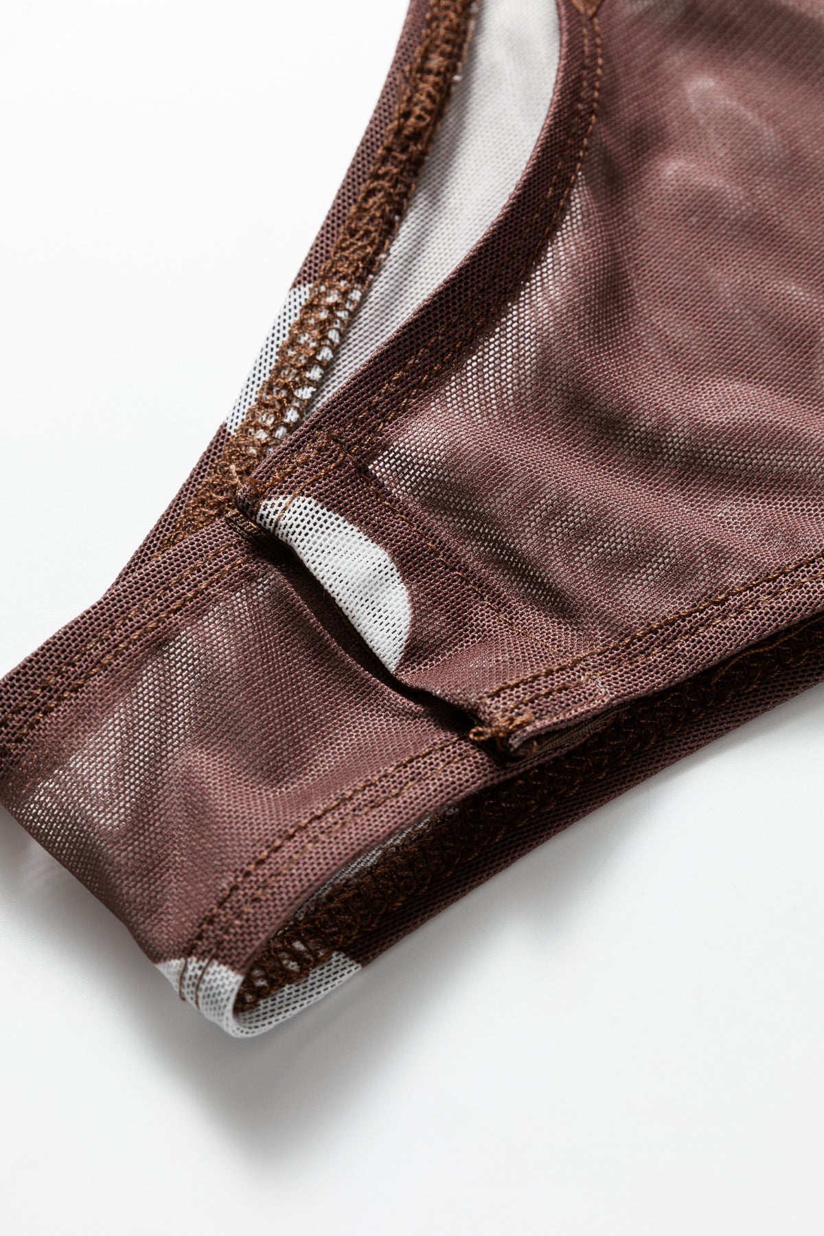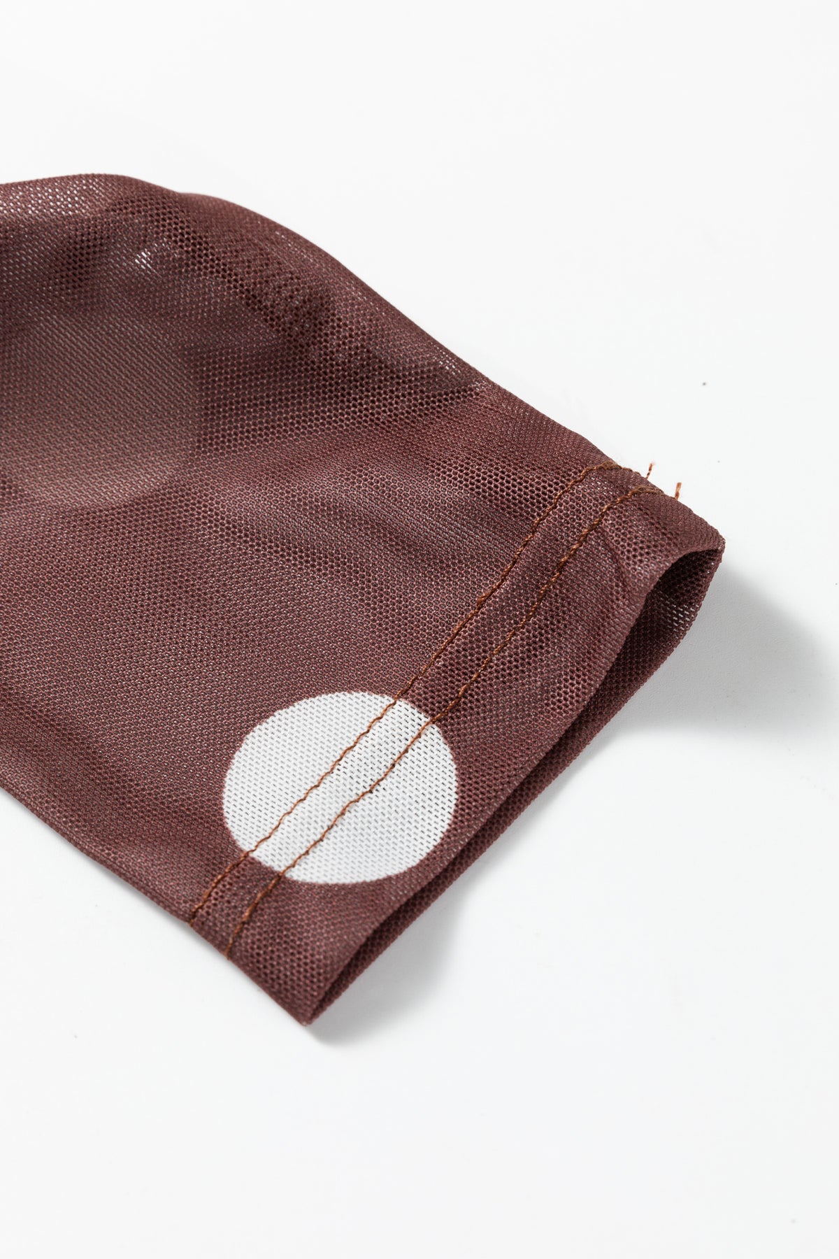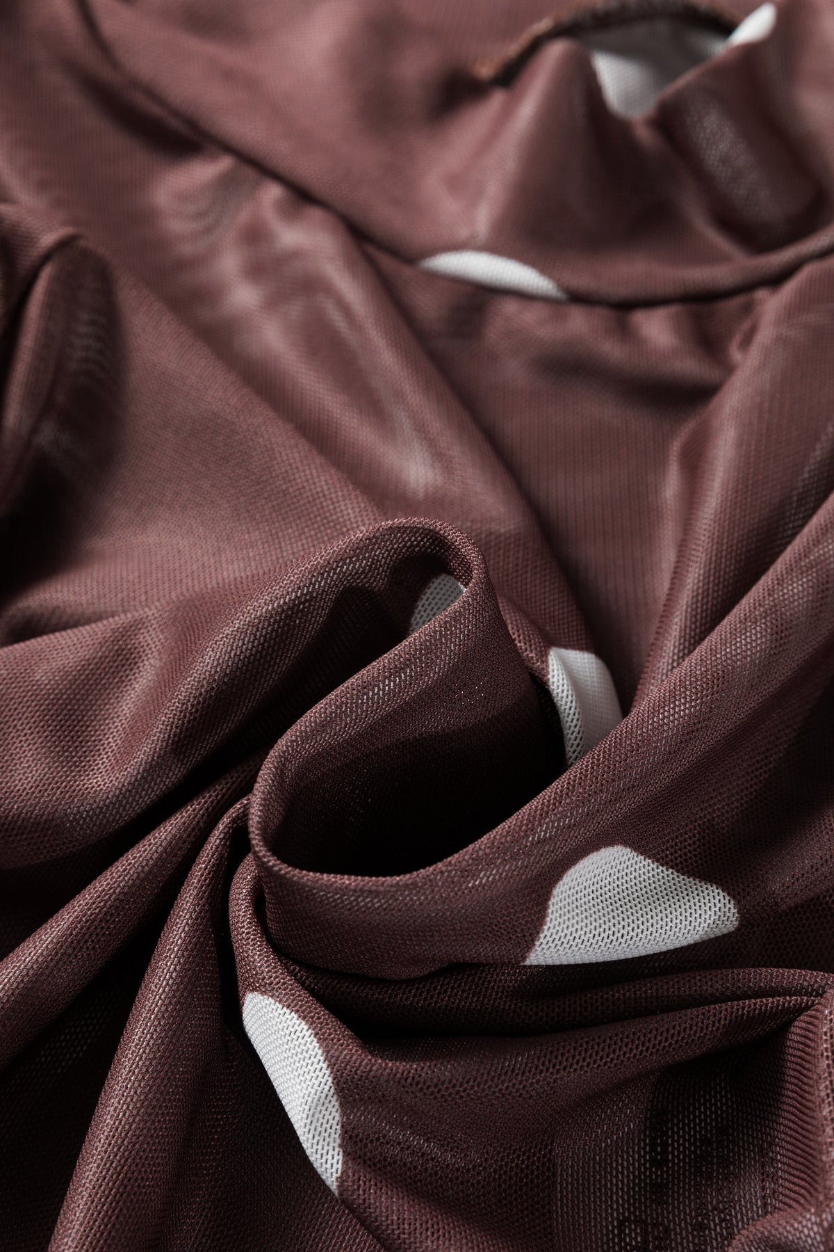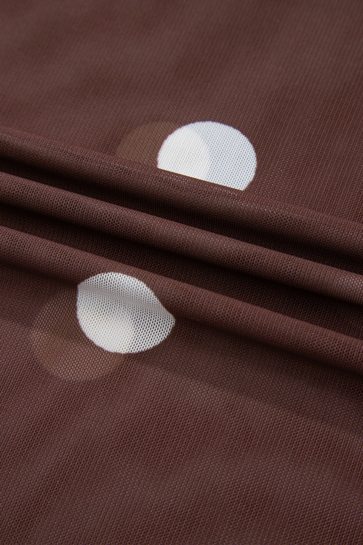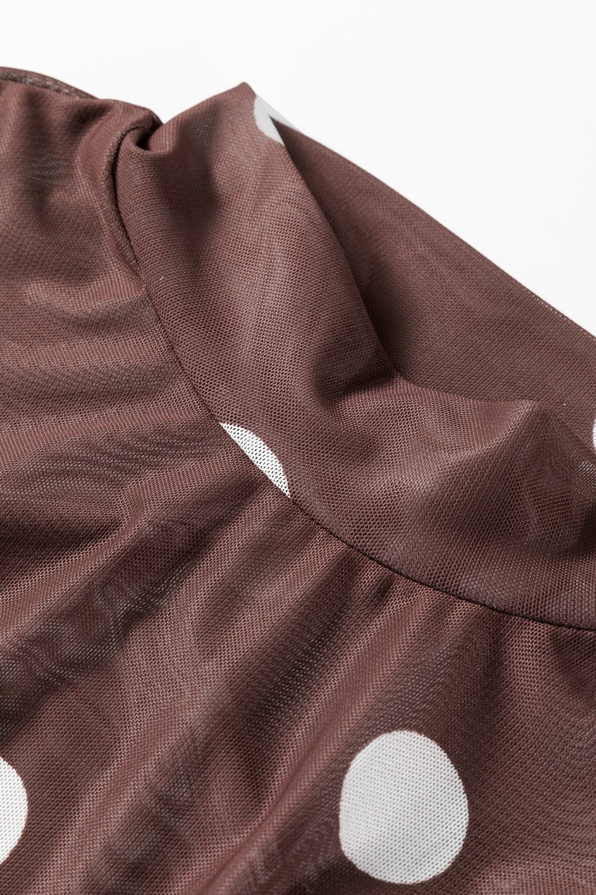 Brown Vintage Polka Dot Print Mesh Long Sleeve Bodysuit