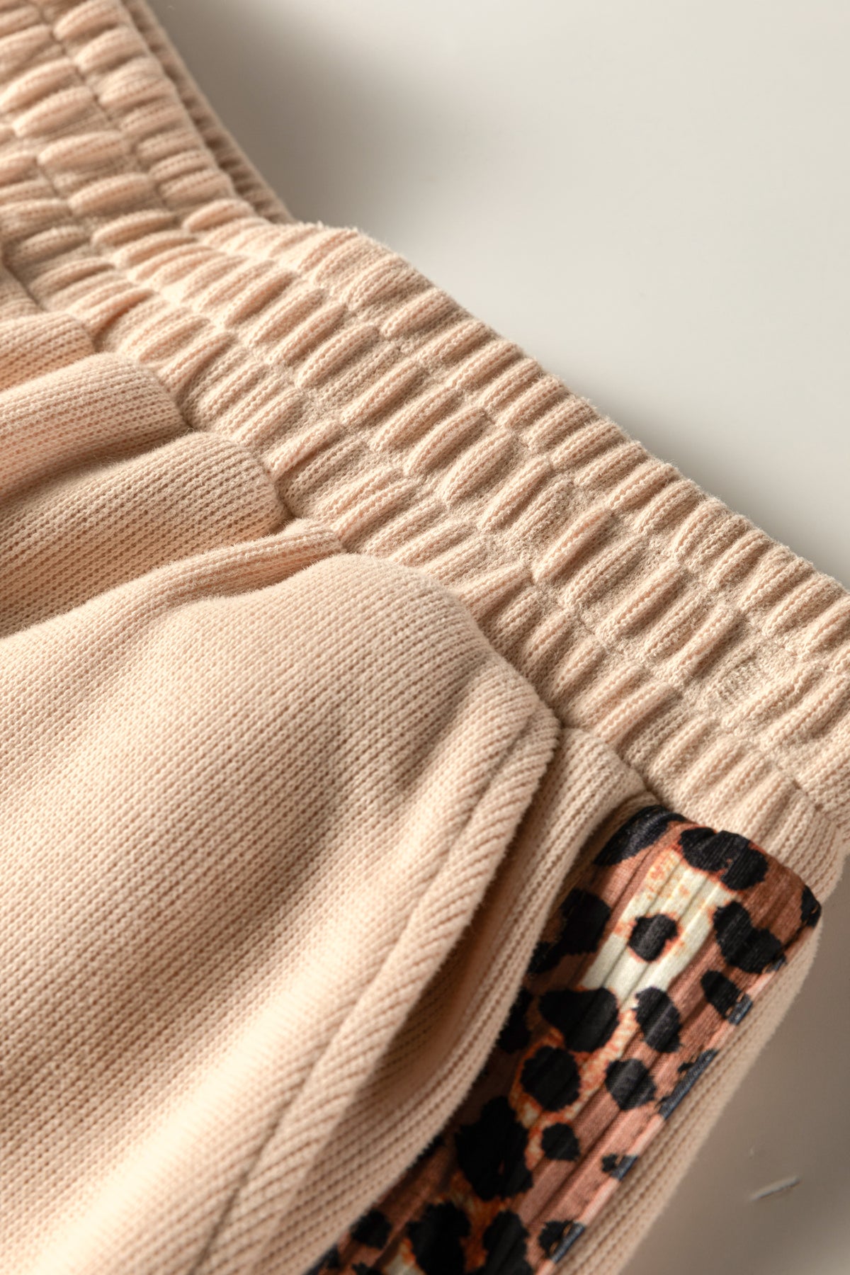 - Leopard trim accents create a bold animal pattern contrast on this casual set.