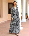 Black White Printed Georgette Ethnic Dress | Women