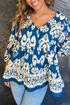 Blue Tribal Geometric Print 3/4 Sleeve Flowy Fit Blouse