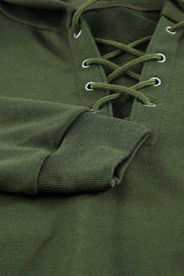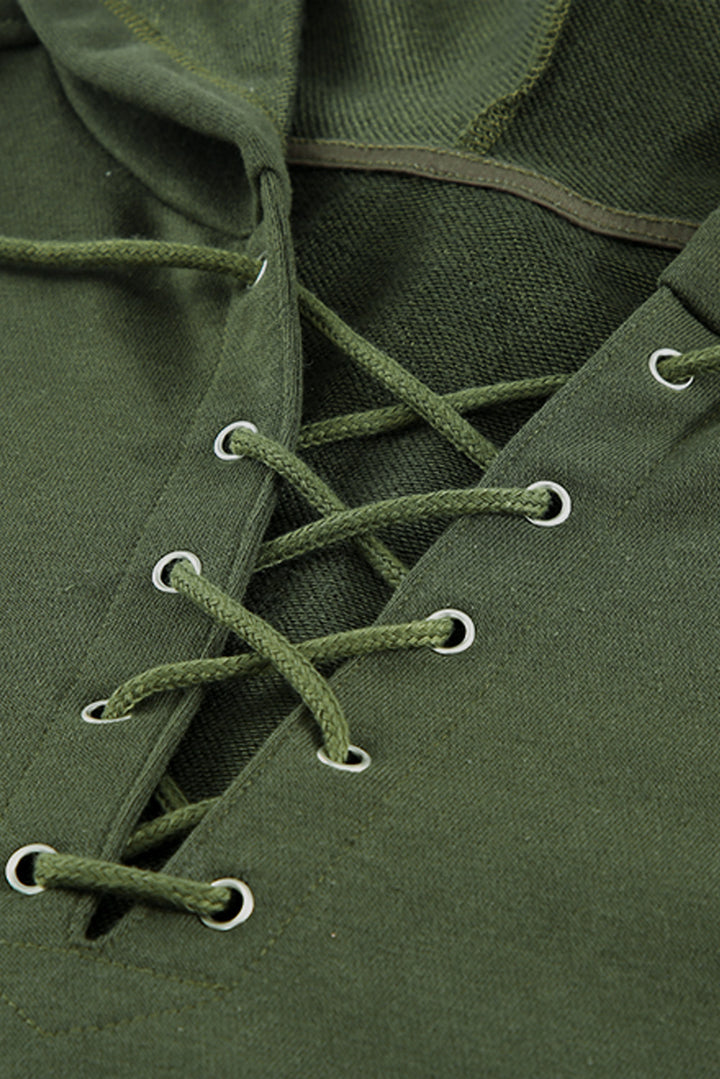 Unleash your adventurous side with our Green Casual Solid Color Lace-up Hoodie! This bold and stylish hoodie features a trendy lace-up design and a vibrant green color, perfect for those who like to take risks and stand out from the crowd. Stay warm and fashionable all in one with this must-have hoodie.