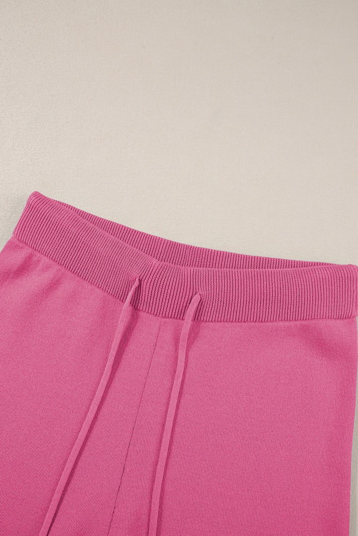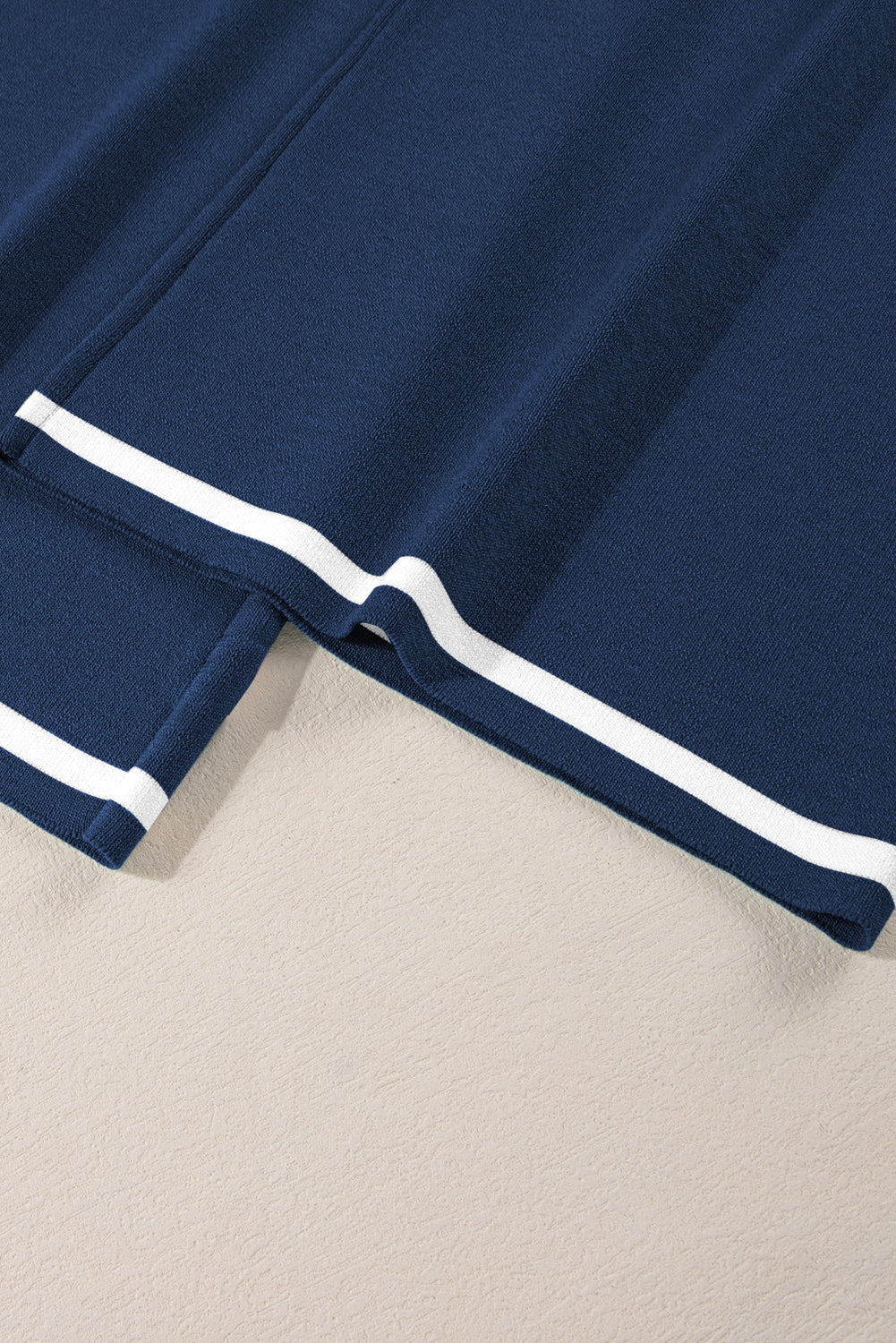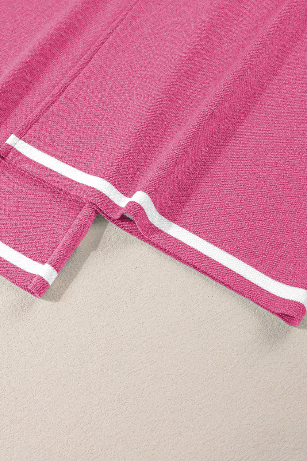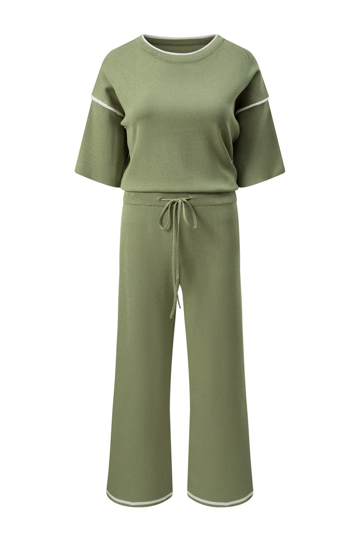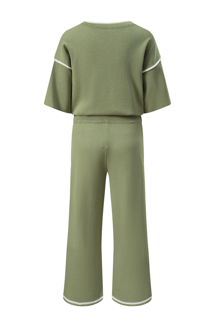 The contrast trim adds this sweater suit a pop of color. Loose top with half sleeve, contrast neckline and piping at arms. The high waist pants are loose fit and flattering. Made of premium knitted fabric, this sweater knit pant suit is quality and wonβt easy get pilling.