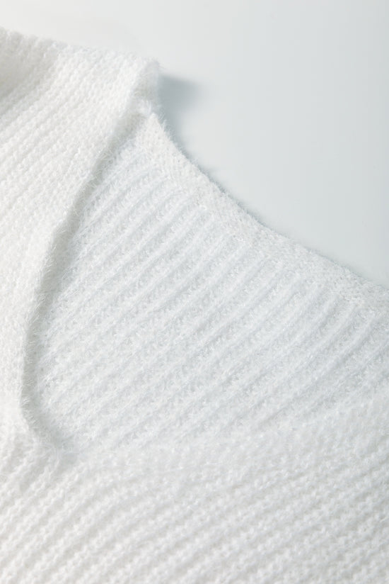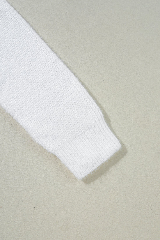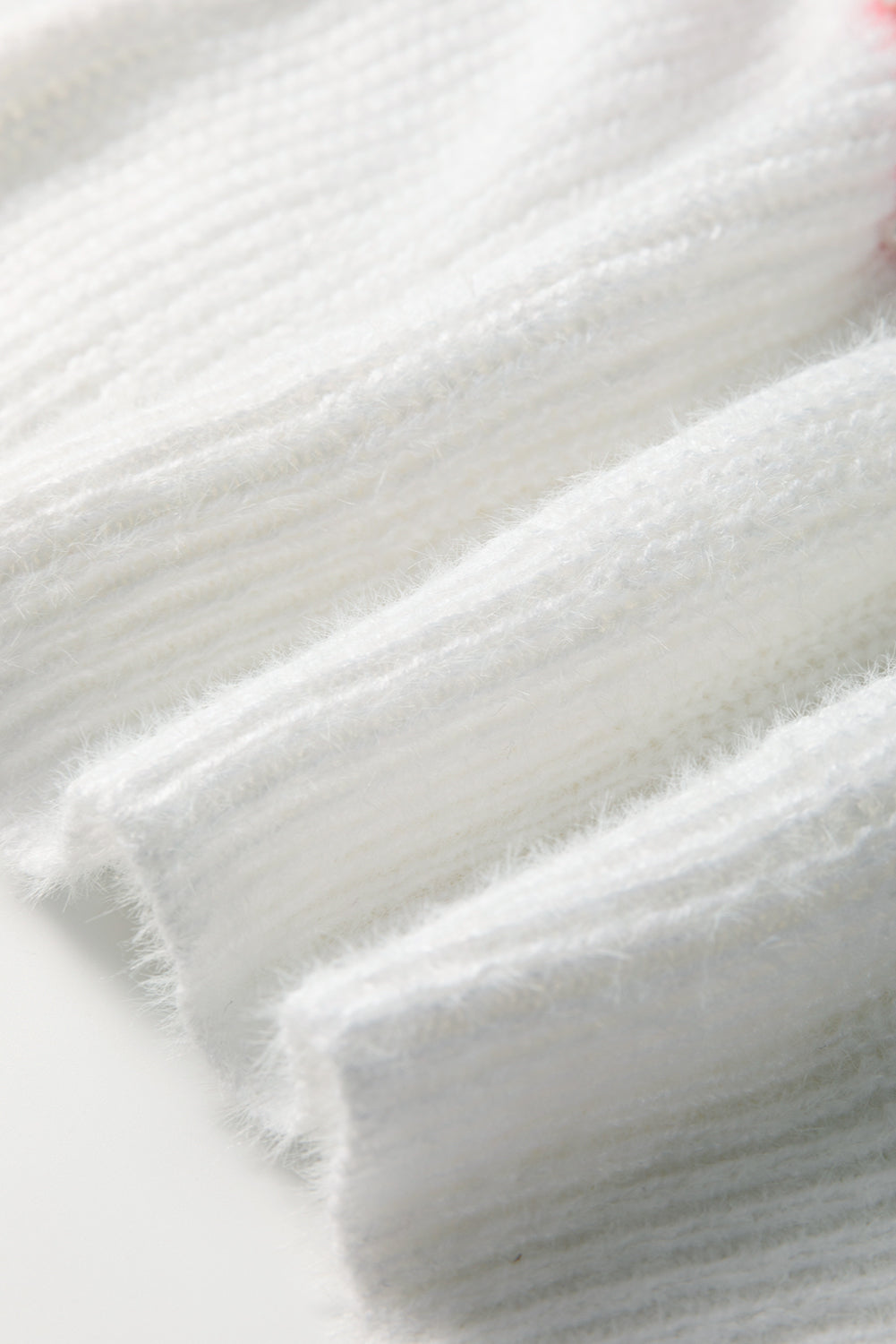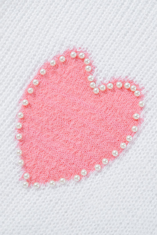 This is a fuzzy sweater well-received by young women. The heart pattern with pearl details are eye-catching. It has a v neckline, dropped shoulders, and a loose fit. Pair this sweater with our fashion jeans and shoes.